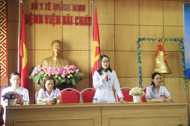 Bác sĩ CKII Đinh Thị Lan Oanh – Phó Giám đốc Bệnh viện Bãi Cháy phát biểu tại Hội thi