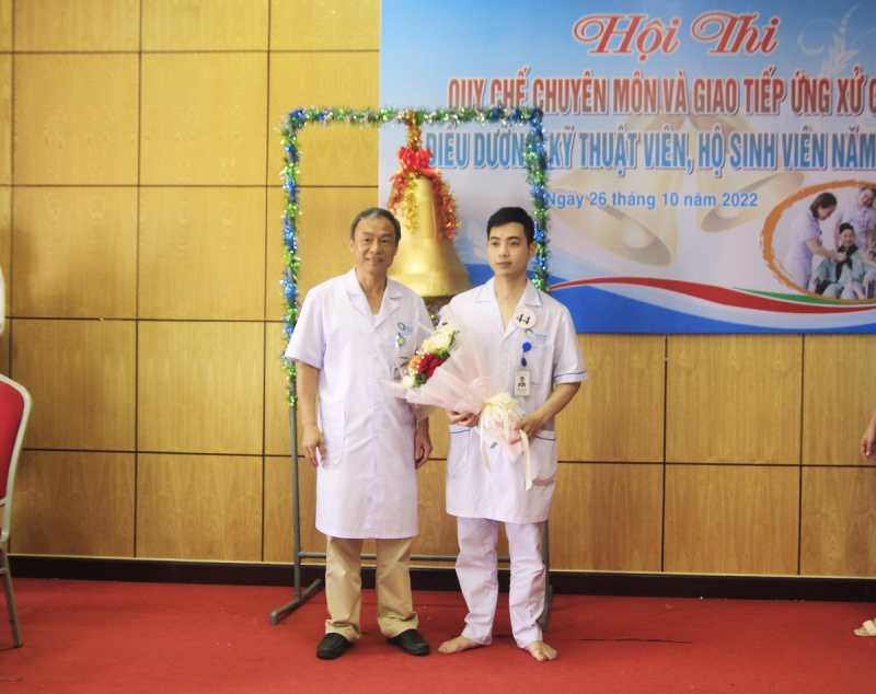 Đến dự có TTND.BSCKII Lê Ngọc Dũng – Giám đốc Bệnh viện, BSCKII Đinh Thị Lan Oanh – Phó Giám đốc Bệnh viện, Điều dưỡng CKI Hà Thị Dung – Trưởng phòng điều dưỡng bệnh viện cùng 50 thí sinh xuất sắc được tuyển chọn từ các Vòng thi lý thuyết và thực hành của Hội thi.