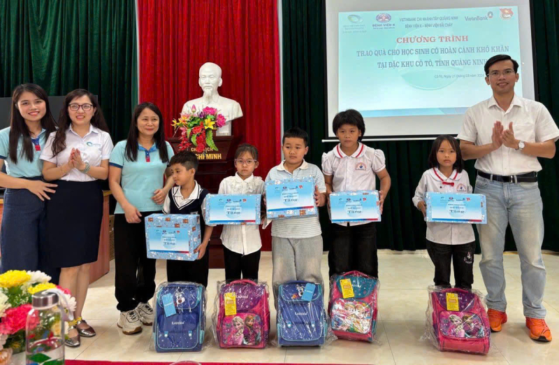 Thăm trường Trường Tiểu học và THCS Cô Tô, Đoàn công tác trao tặng 01 bộ máy tính, 30 suất quà với tổng giá trị 18 triệu đồng cho các hộ gia đình và học sinh có hoàn cảnh khó khăn. Những quà tặng hỗ trợ mang ý nghĩa tiếp sức động lực để các em học sinh vượt khó vươn lên trong học tập.