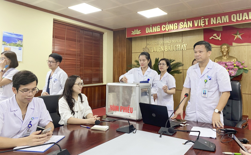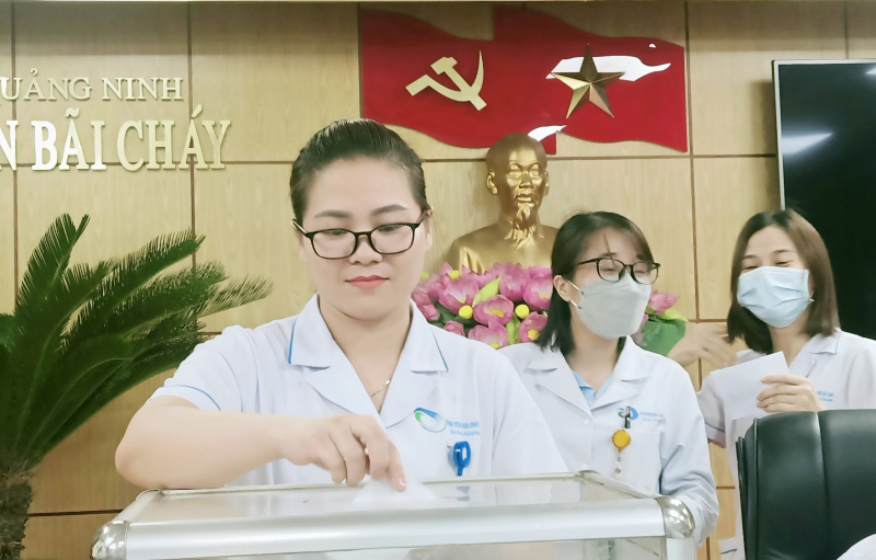 Bỏ phiếu giới thiệu đồng chí Thái Xuân Hường, Chủ tịch Công đoàn Bệnh viện tham Ban chấp hành Công đoàn Ngành Y tế khóa XVI,