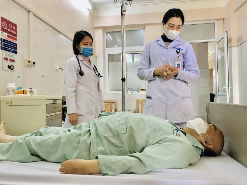 Ths.BS Hoàng Thị Nhung - Khoa Quốc tế và điều trị theo yêu cầu cùng nhân viên y tế thăm khám sức khỏe cho bệnh nhân