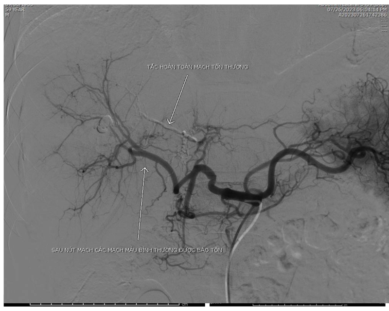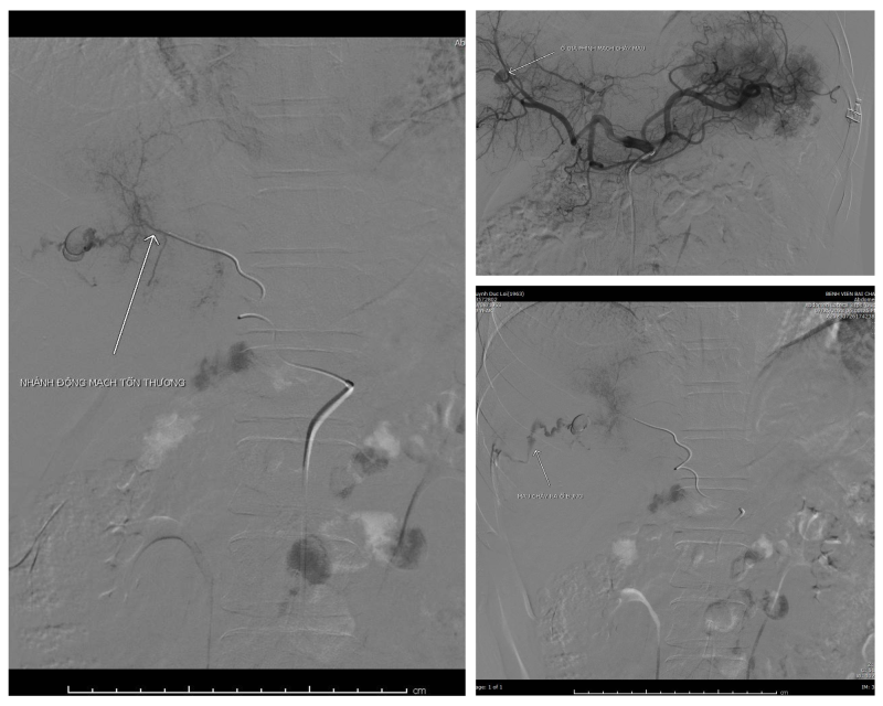 Trước nguy cơ bệnh nhân có thể tử vong do shock mất máu, kíp trực cấp cứu bệnh viện đã hội chẩn liên khoa: Ngoại - Điện quang can thiệp - Hồi sức tích cực thống nhất nút mạch cầm máu điều trị vỡ gan.