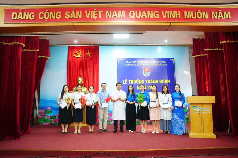 Tham dự buổi lễ có đồng chí Đỗ Ánh Quyên – Chủ tịch Hội Liên hiệp Thanh niên – Phó bí thư Đoàn phường Việt Hưng; BSCKII Hoàng Văn Quyết – Phó Bí thư Đảng ủy – Phó Giám đốc Bệnh viện Bãi Cháy; đồng chí Cao Đức Mạnh – Bí thư Đoàn thanh niên Bệnh viện, 68 đồng chí đoàn viên được Trưởng thành đoàn năm 2026 và đông đảo đoàn viên thanh niên đến từ 10 chi đoàn trực thuộc.