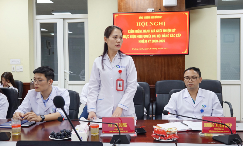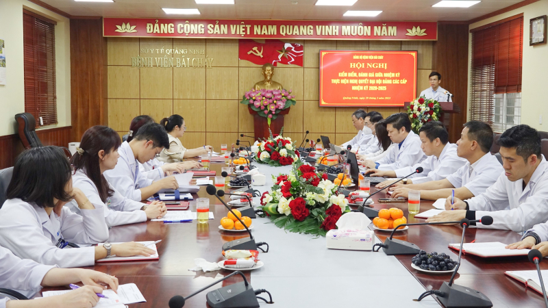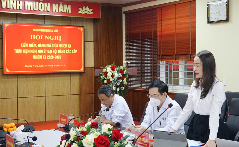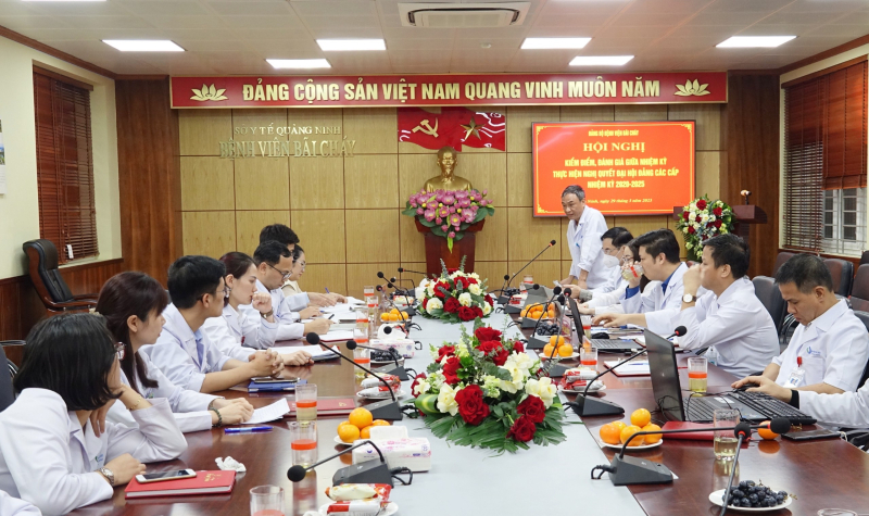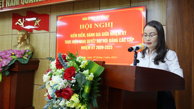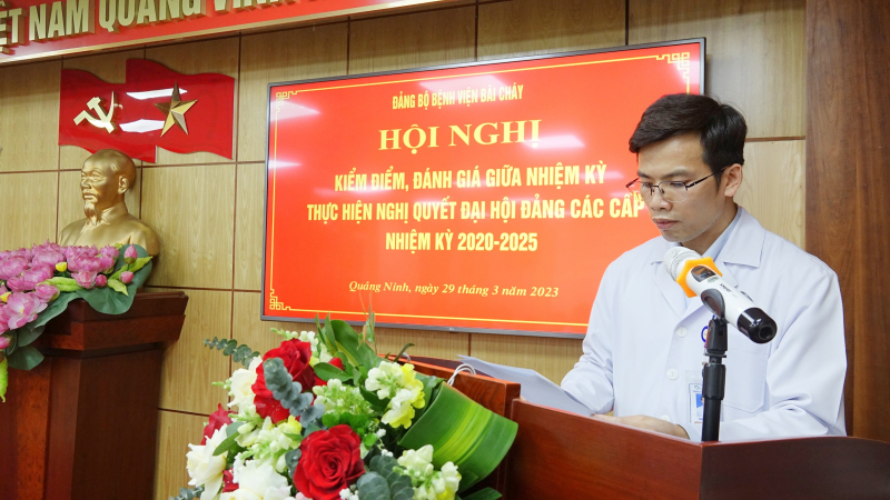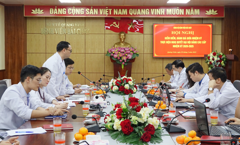 Ngày 29/3/2023, Đảng bộ Bệnh viện Bãi Cháy tổ chức Hội nghị kiểm điểm, đánh giá giữa nhiệm kỳ thực hiện nghị quyết Đại hội Đảng các cấp nhiệm kỳ 2020 -2025. TTND. Bác sĩ CKII Lê Ngọc Dũng - Bí thư Đảng ủy, Giám đốc Bệnh viện chủ trì Hội nghị.
