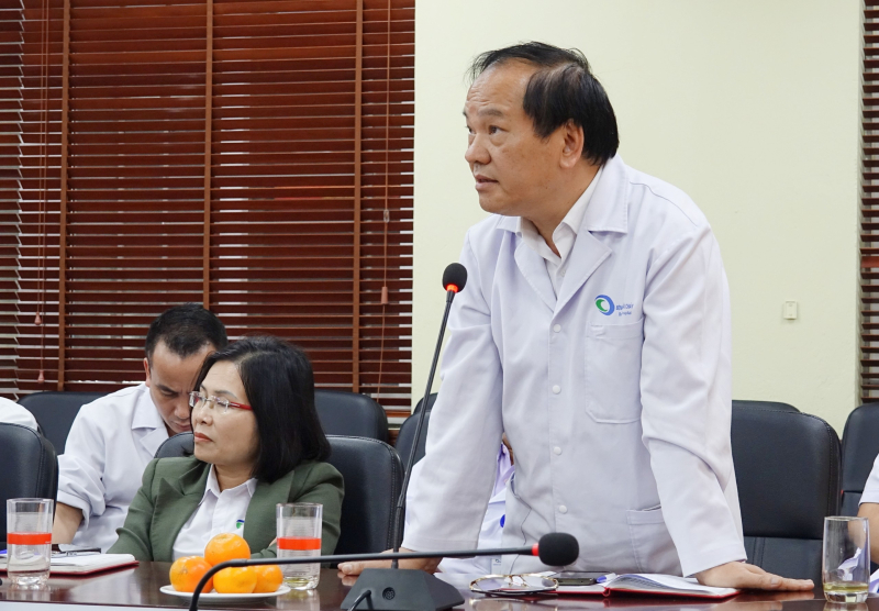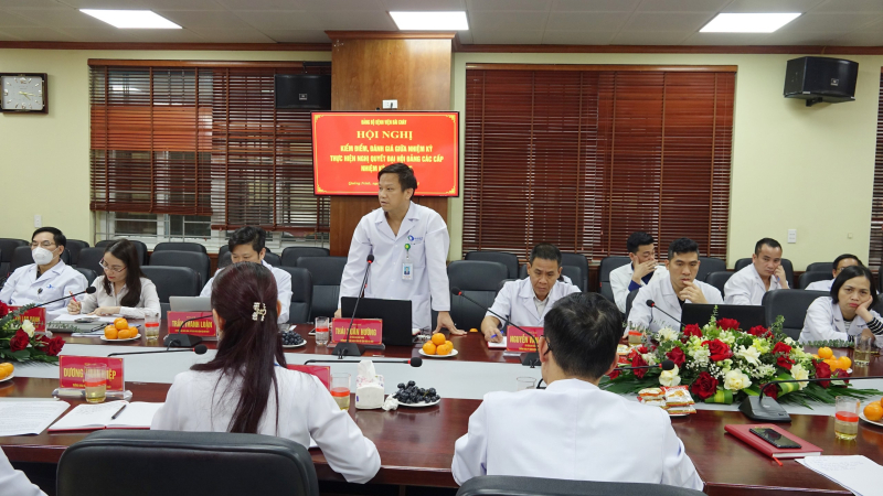 TTND. Bác sĩ CKII Lê Ngọc Dũng – Bí thư Đảng ủy, Giám đốc Bệnh viện báo cáo kiểm điểm, đánh giá kết quả giữa nhiệm kỳ.