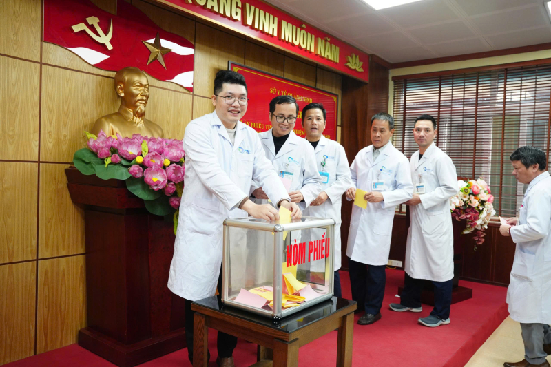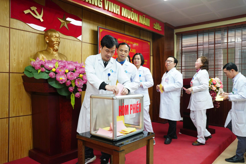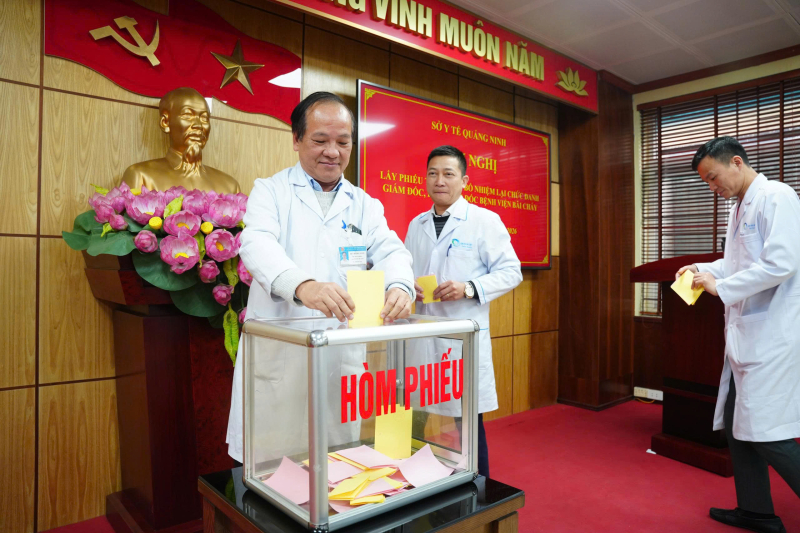 Tại hội nghị, các đại biểu đã tiến hành lấy phiếu tín nhiệm đối với Thầy thuốc Nhân dân, BSCKII Lê Ngọc Dũng – Giám đốc Bệnh viện Bãi Cháy và Ths.BS Trần Thanh Luận – Phó Giám đốc Bệnh viện Bãi Cháy theo đúng trình tự, quy trình, bảo đảm dân chủ, khách quan, công khai và minh bạch.