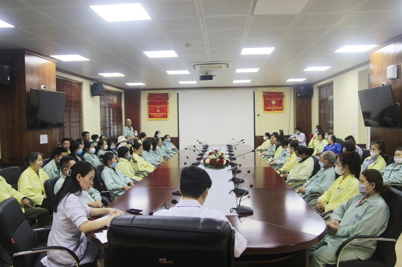 Tham dự cuộc họp có Ths.BS Trần Thanh Luận – Phó Giám đốc Bệnh viện Bãi Cháy, đồng chí Hà Thị Dung – Trưởng phòng điều dưỡng cùng đại diện bệnh nhân, người nhà bệnh nhân đang điều trị nội trú tại các khoa chức năng.