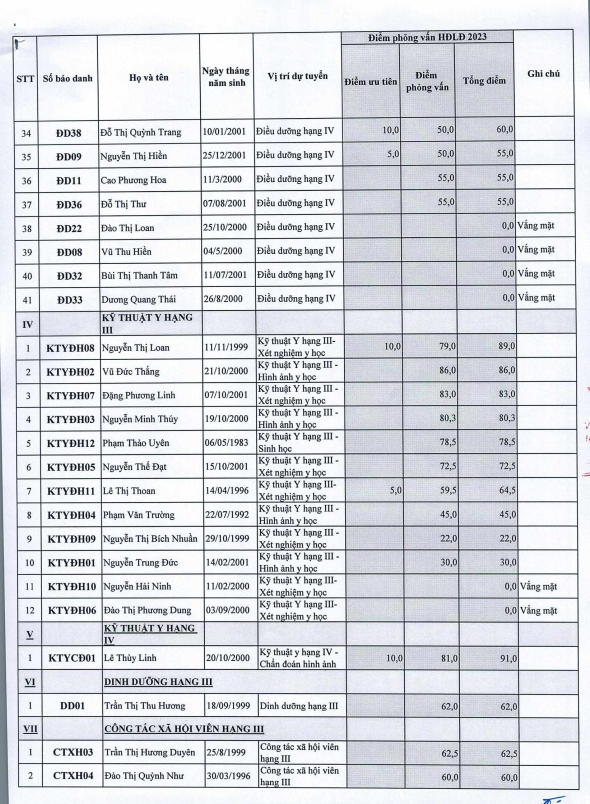 Kết quả kỳ thi tuyển hợp đồng lao động năm 2023 của Bệnh viện Bãi Cháy