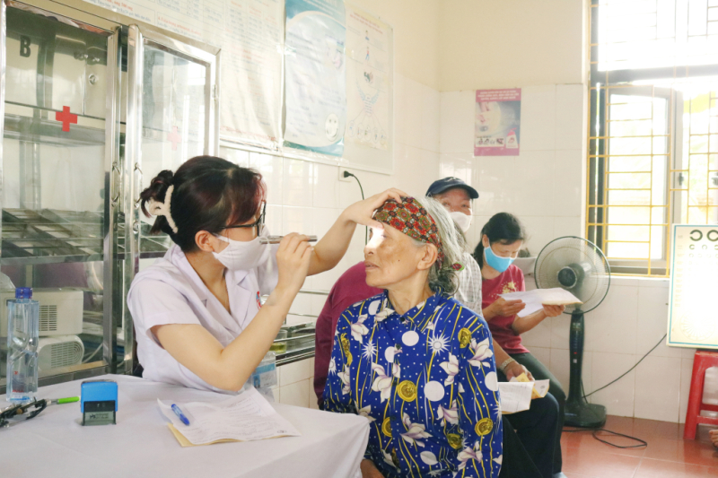 Người dân xã Liên Vị (TX Quảng Yên) được các bác sĩ Bệnh viện Việt Nam - Thụy Điển Uông Bí khám miễn phí, sàng lọc bệnh về mắt.