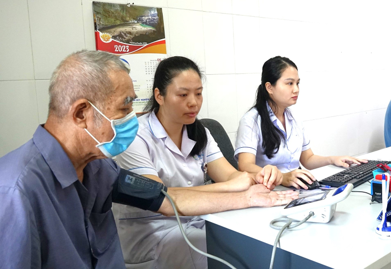 Người bệnh được kiểm tra huyết áp tại Bệnh viện Bãi Cháy.
