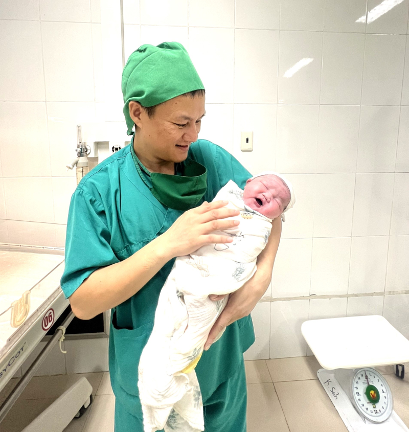 Sau khoảng 30 phút, kíp phẫu thuật do bác sĩ CKI Nguyễn Văn Mạnh, Phó khoa Phụ Sản, Bệnh viện Bãi Cháy cùng ê kíp đã phẫu thuật cấp cứu thành công lấy ra một bé gái nặng 5000 gram.