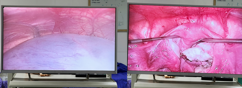 Hình ảnh khối u buồng trứng trên màn hình nội soi