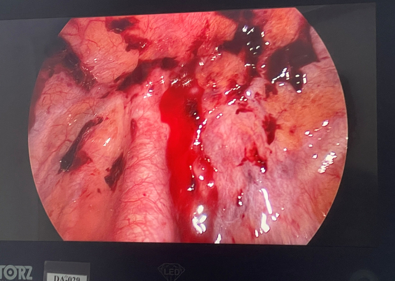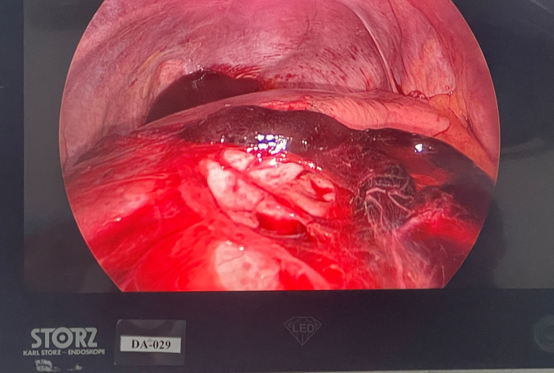 Hình ảnh máu đang chảy ra từ dây chằng đỉnh phổi.