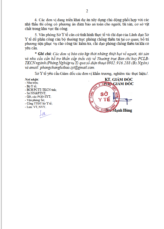 Thực hiện chỉ đạo của Ủy ban nhân dân tỉnh tại Công điện số 03/CĐ- UBND ngày 03/9/2024 về chủ động ứng phó với bão số 3; công văn số 2254- CV/TU ngày 03/9/2024 của Tỉnh uỷ về việc tăng cường chỉ đạo phòng, chống, ứng phó với cơn bão số 3 và những tác động của cơn bão số 3;