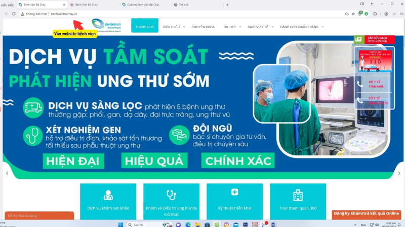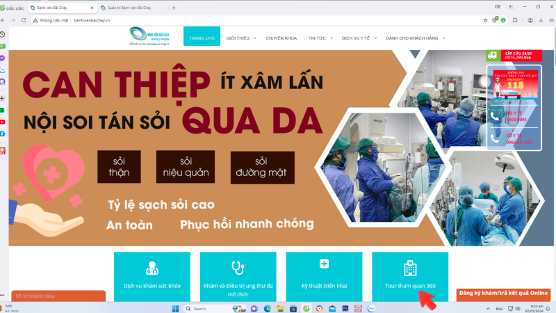 Thứ hai bạn vào trang website: http://www.benhvienbaichay.vn, sau đó vào phần Tour thăm quan 360.