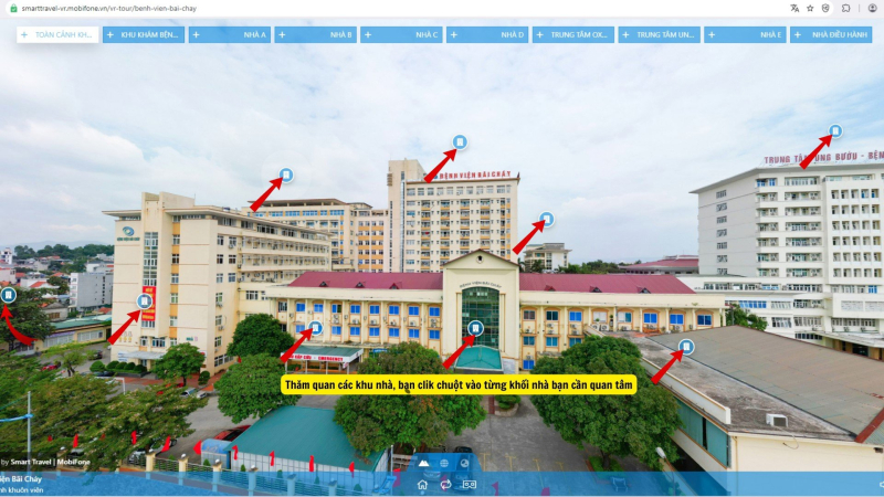 Thứ nhất bạn có thể vào trực tiếp đường link: https://smarttravel-vr.mobifone.vn/vr-tour/benh-vien-bai-chay