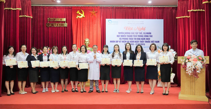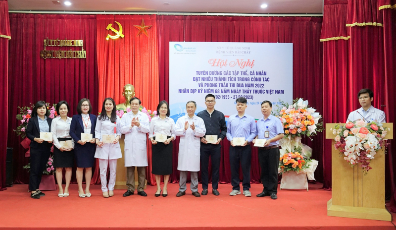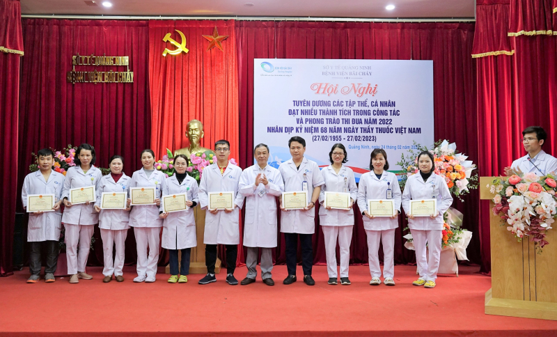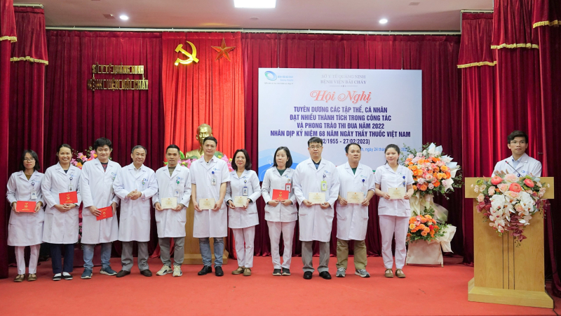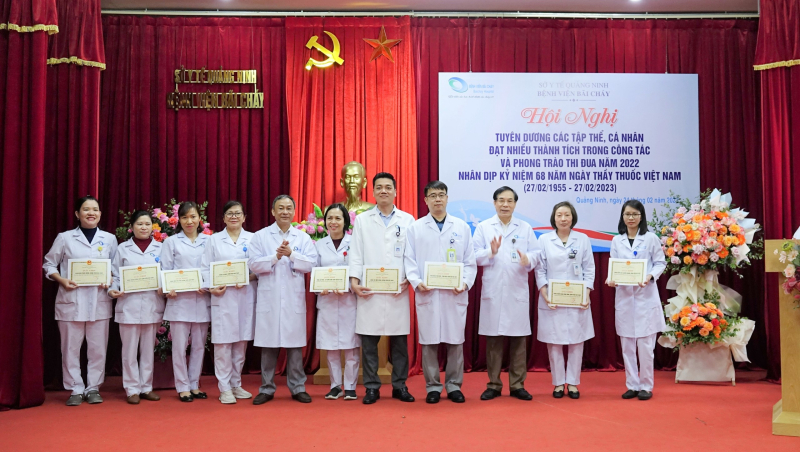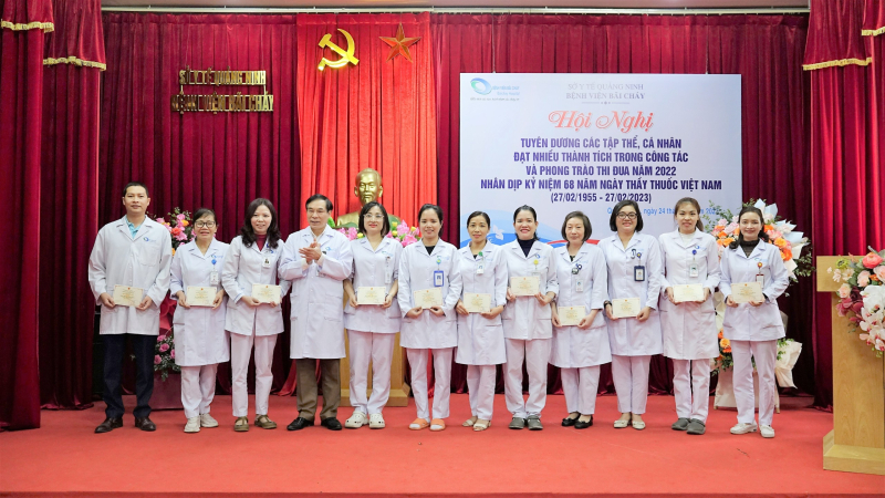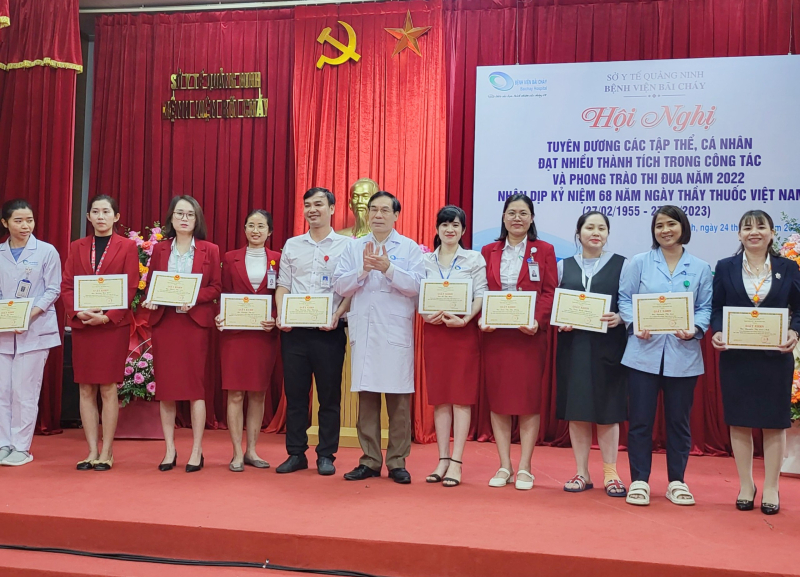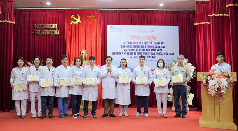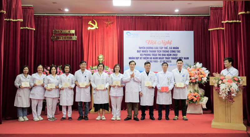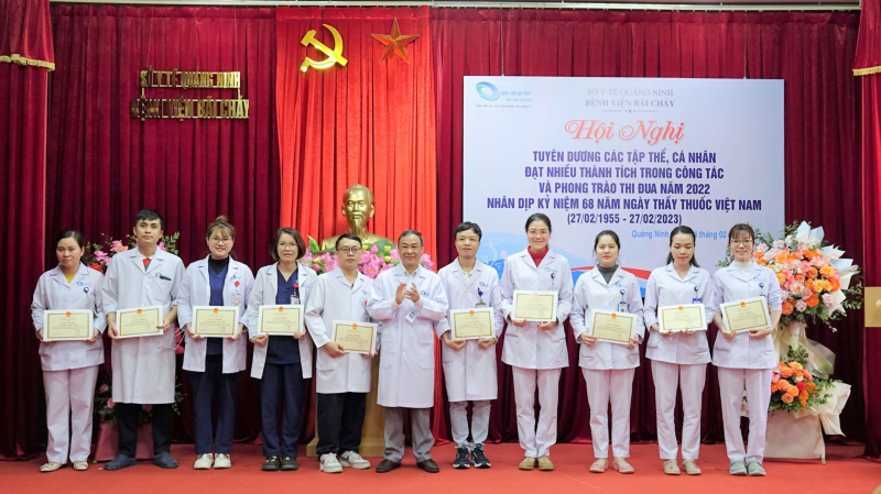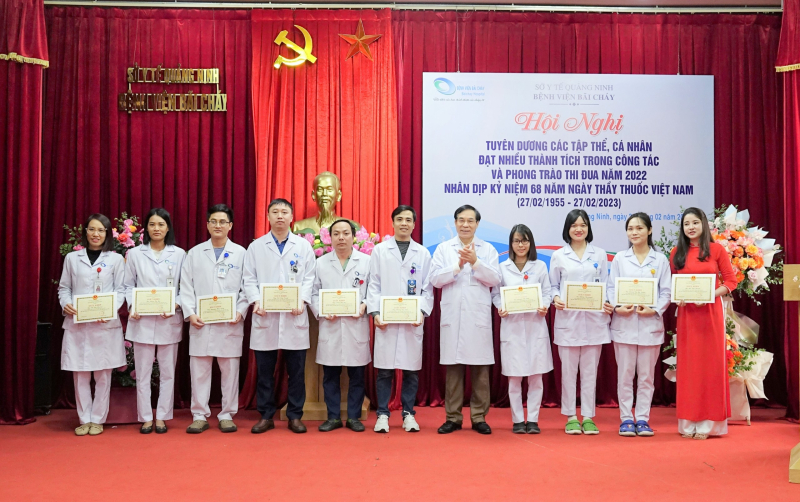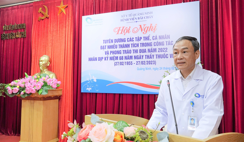 Sáng ngày 24/02/2023, Bệnh viện Bãi Cháy tổ chức Hội nghị tuyên dương các tập thể, cá nhân đạt nhiều thành trong phong trào thi đua năm 2022 nhân kỷ niệm 68 năm ngày thầy thuốc Việt Nam (27/02/1955-27/02/2023), TTND.BSCKII Lê Ngọc Dũng - Bí thư Đảng ủy, Giám đốc Bệnh viện chủ trì Hội nghị.