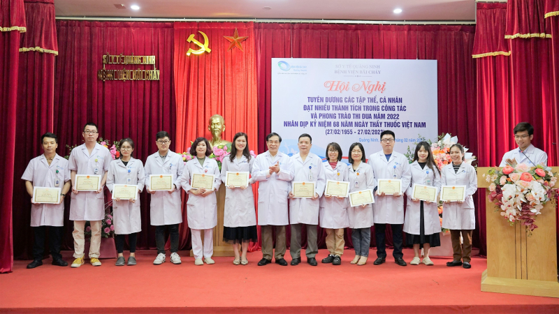 Năm 2022, dưới sự lãnh đạo, chỉ đạo của cấp ủy Đảng, Ban Giám đốc cùng với sự phối hợp của các đoàn thể và sự đồng lòng của đội ngũ cán bộ, nhân viên trong bệnh viện, bệnh viện đã hoàn thành xuất sắc nhiệm vụ được giao. Tổng kết công tác thi đua, khen thưởng năm 2022, nhiều tập thể, cá nhân trong đơn vị đã được xét tặng các danh hiệu thi đua và hình thức khen thưởng cụ thể như sau: Tập thể Bệnh viện được xét Tập thể lao động xuất sắc và được nhận Bằng khen của UBND tỉnh Quảng Ninh; 09 tập thể khoa, phòng và 21 cá nhân được nhận Bằng khen của UBND; 04 cá nhân được nhận danh hiệu Chiến sĩ thi đua cấp Tỉnh; 119 cá nhân được nhận danh hiệu Chiến sĩ thi đua cấp cơ sở; 21 tập thể khoa, phòng và 301 cá nhân được nhận Giấy khen của Sở Y tế Quảng Ninh.
