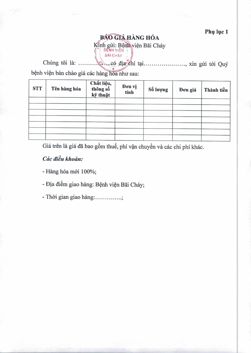 Thông báo số 2336 về nhu cầu mua sắm ấn chỉ phục vụ công tác chuyên môn tại bệnh viện bãi cháy năm 2026