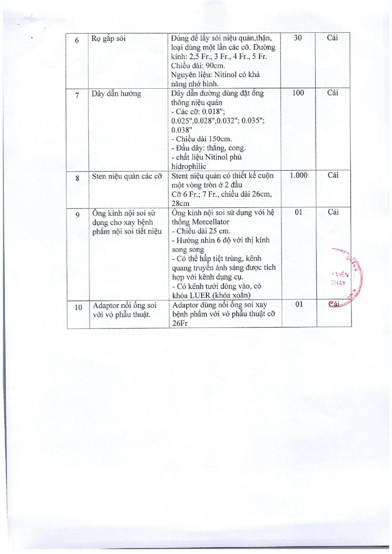 Thông báo số 1901 về nhu cầu mua sắm vật tư cho máy laser tán sỏi và cắt đốt u xơ tiền liệt tuyến 2024.