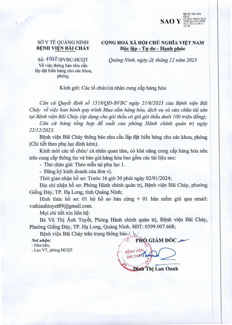 Thông báo 353/BVBC-HCQT về nhu cầu lắp đặt rèm cho các khoa, phòng