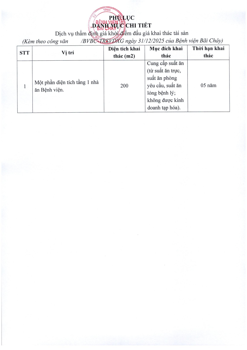 2595/BVBC-TRSVDXG Về việc thông báo nhu cầu Dịch vụ thẩm định giá khởi điểm tổ chức đấu giá khai thác tài sản 2025/12/31 09:10