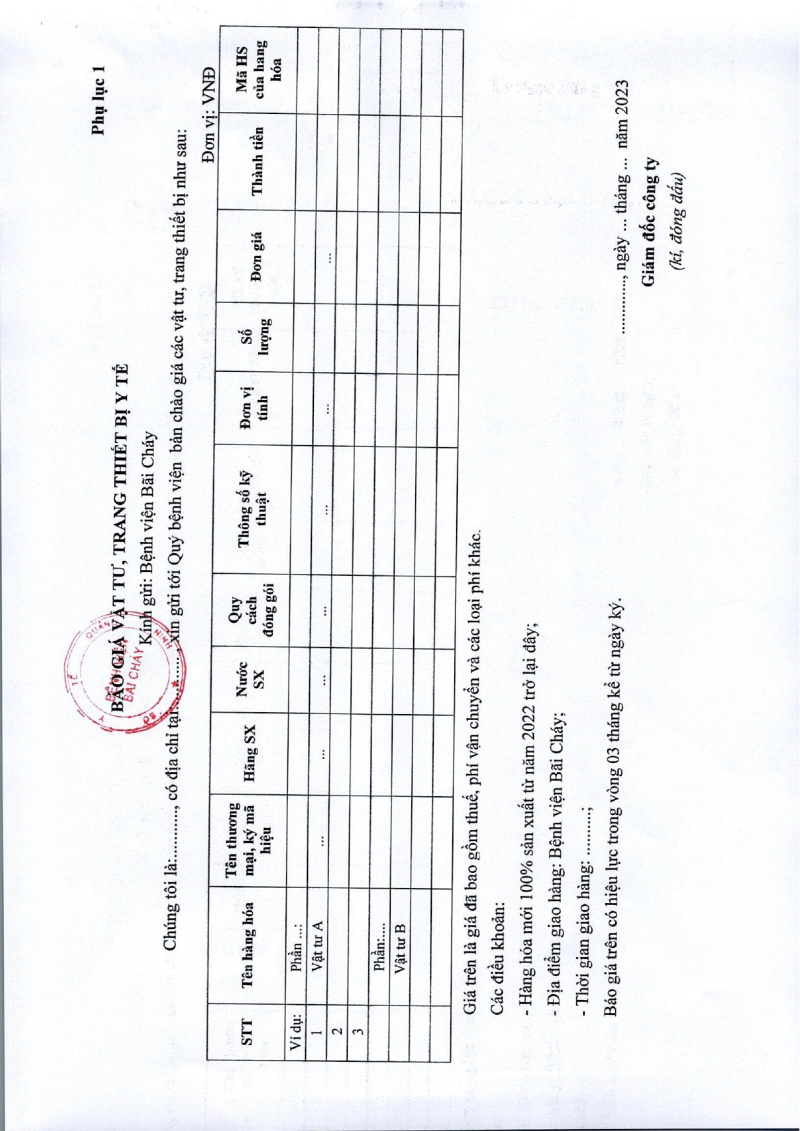 Bệnh viện Bãi Cháy thông báo nhu cầu mua kít xét nghiệm ung thư cổ tử cung năm 2023.