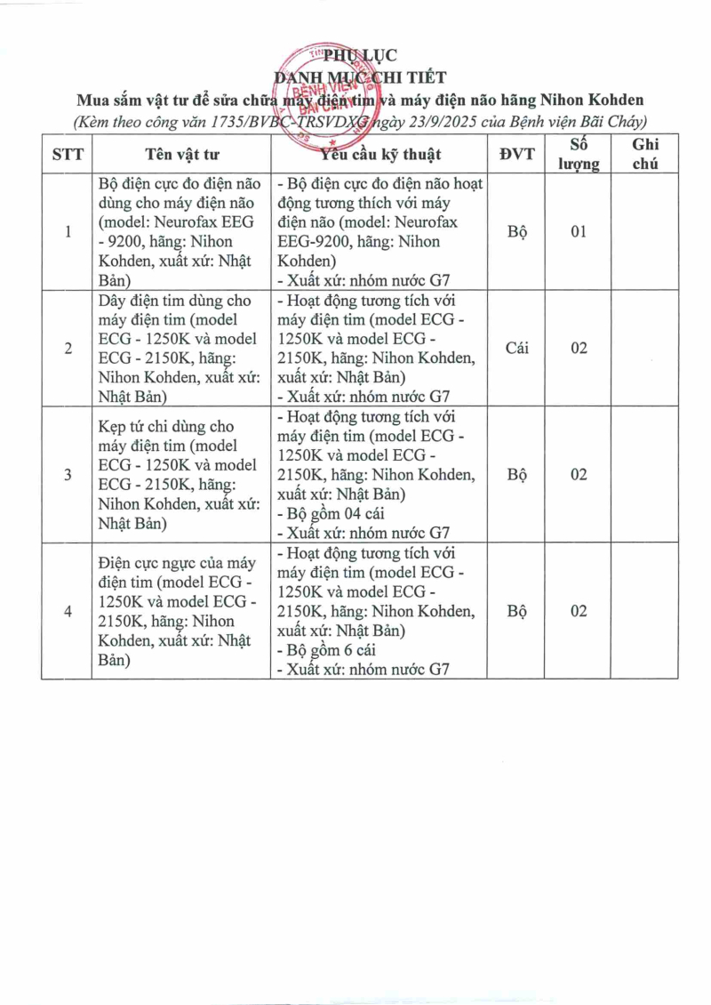 Thông báo 1735 nhu cầu mua sắm vật tư để sửa chữa máy điện tim và máy điện não 2025/09/23 08:36 Thông báo 1735 nhu cầu mua sắm vật tư để sửa chữa máy điện tim và máy điện não