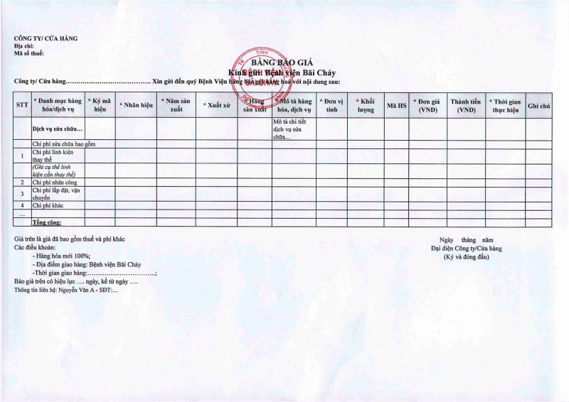 Thông báo 635 về nhu cầu mua sắm vật tư y tế phục vụ công tác chuyên môn