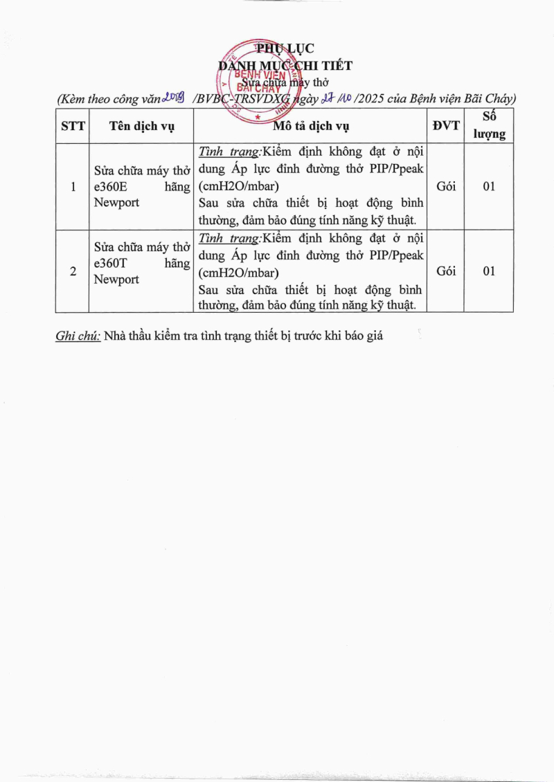 Thông báo 2009 nhu cầu sửa chữa máy thở