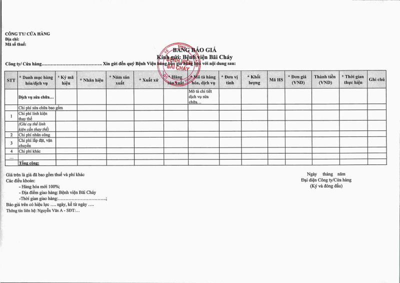 Thông báo 635 về nhu cầu mua sắm vật tư y tế phục vụ công tác chuyên môn