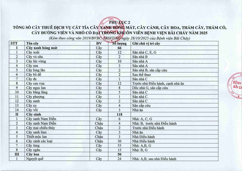 Thông báo 2019 nhu cầu thuê dịch vụ cắt tỉa cây xanh bóng mát, cây cảnh, cây hoa, thảm cây, thảm cỏ và nhổ cỏ dại