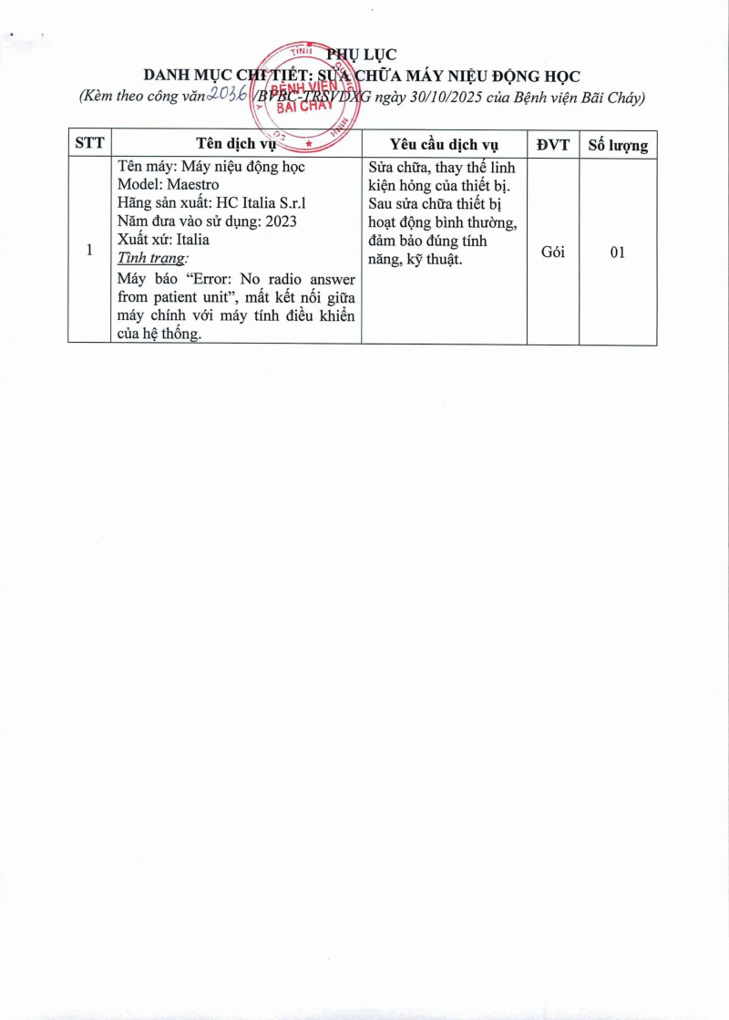 Thông báo 2036 nhu cầu sửa chữa máy niệu động học 2025/10/30 08:25 Thông báo 2036 nhu cầu sửa chữa máy niệu động học