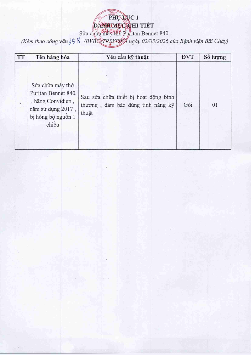 Thông báo 358 nhu cầu sửa chữa máy thở