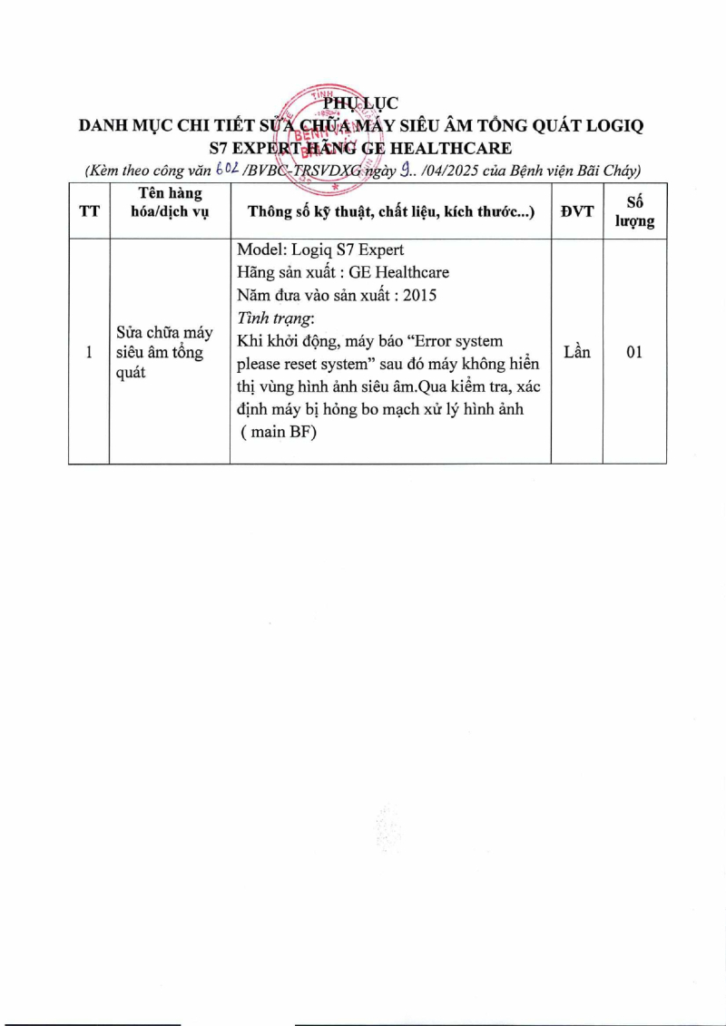 Thông báo 602 nhu cầu sửa chữa máy siêu âm tổng quát 2025/04/09 08:32 Thông báo 602 nhu cầu sửa chữa máy siêu âm tổng quát