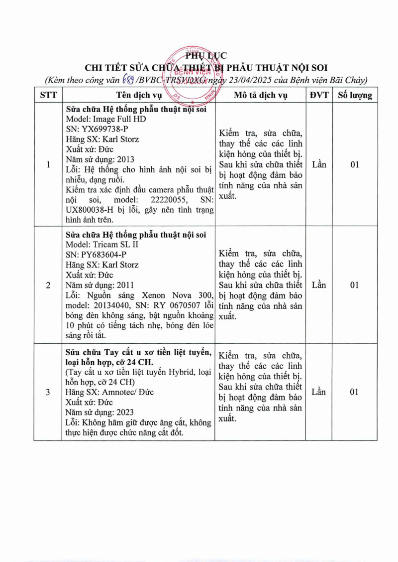 Thông báo 689 nhu cầu sửa chữa thiết bị phẫu thuật nội soi 2025/04/24 01:35 Thông báo 689 nhu cầu sửa chữa thiết bị phẫu thuật nội soi
