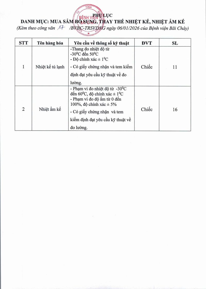 Thông báo số 17 về nhu cầu mua sắm nhiệt kế, nhiệt ẩm kế