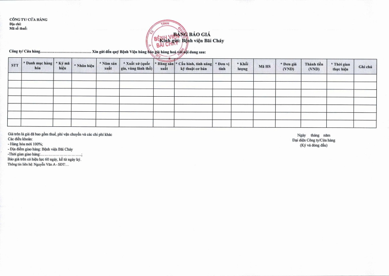 Thông báo 635 về nhu cầu mua sắm vật tư y tế phục vụ công tác chuyên môn