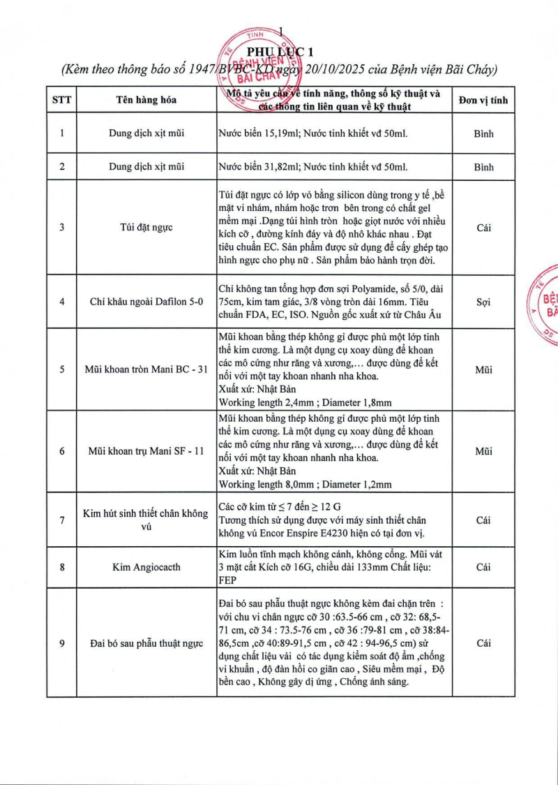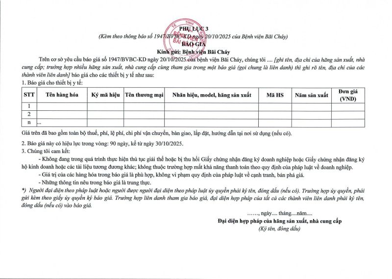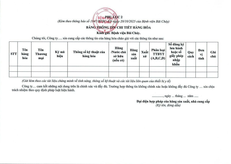 Thông báo số 1947 về nhu cầu mua sắm vật tư cho nhà thuốc bệnh viện