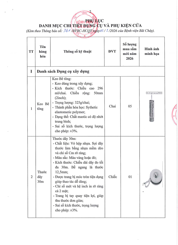 Thông báo số 361 về nhu cầu mua sắm dụng cụ và phụ kiện cửa