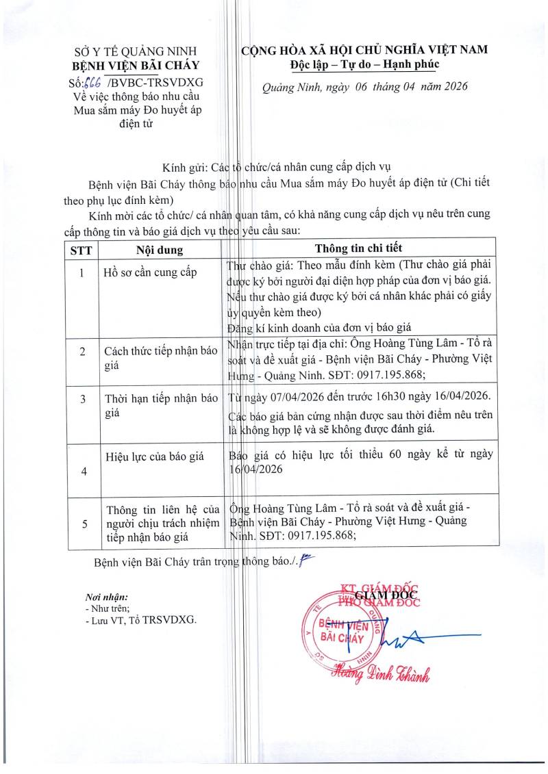 Thông báo số 666 về nhu cầu mua sắm máy đo huyết áp điện tử
