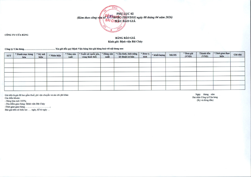 Thông báo số 683 về nhu cầu mua tủ bảo quản thuốc và vacxin phục vụ công tác tiêm vacxin dịch vụ tại bệnh viện Bãi Cháy 2026/04/08 08:04