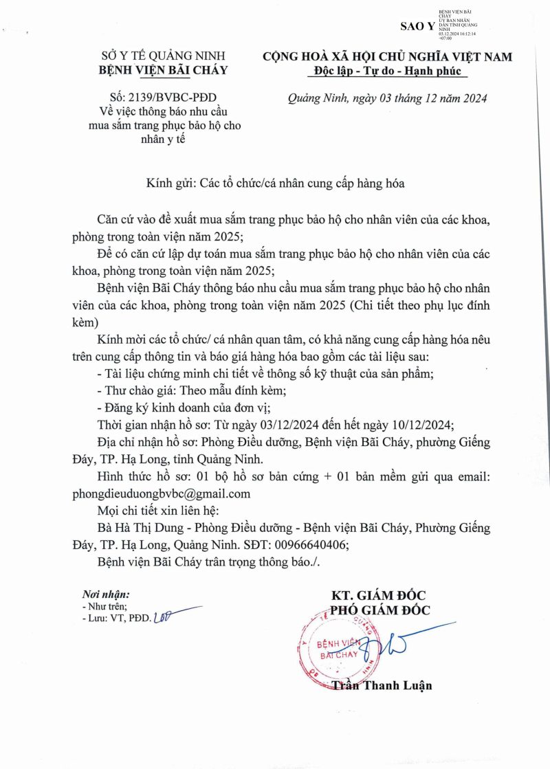 Thông báo số 1245 về nhu cầu mời báo giá thuốc bệnh viện
