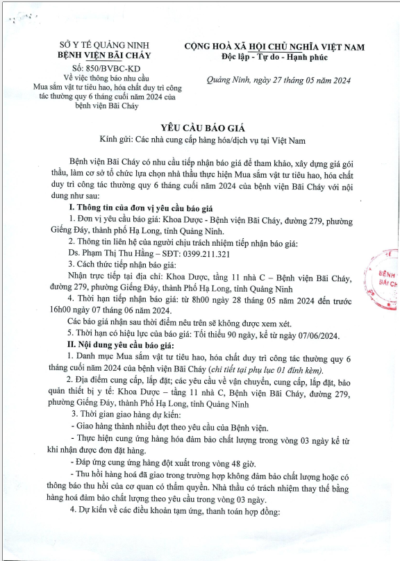 Thông báo 689 nhu cầu sửa chữa thiết bị phẫu thuật nội soi
